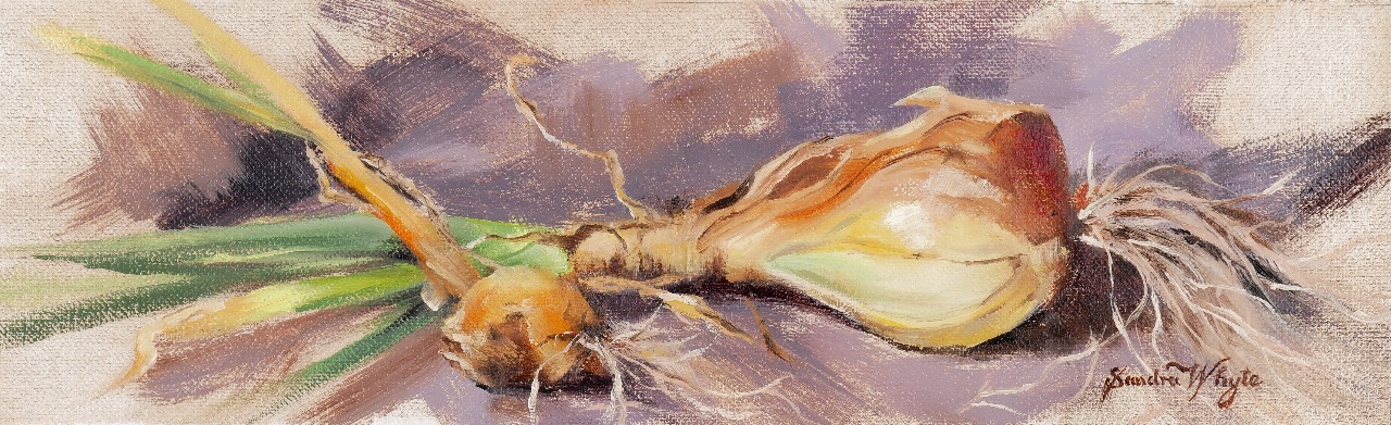 A still life study I did of onions from my garden. This was the first time I’d grown them and was rather proud of the result. Thought they looked good enough to paint, so I did.